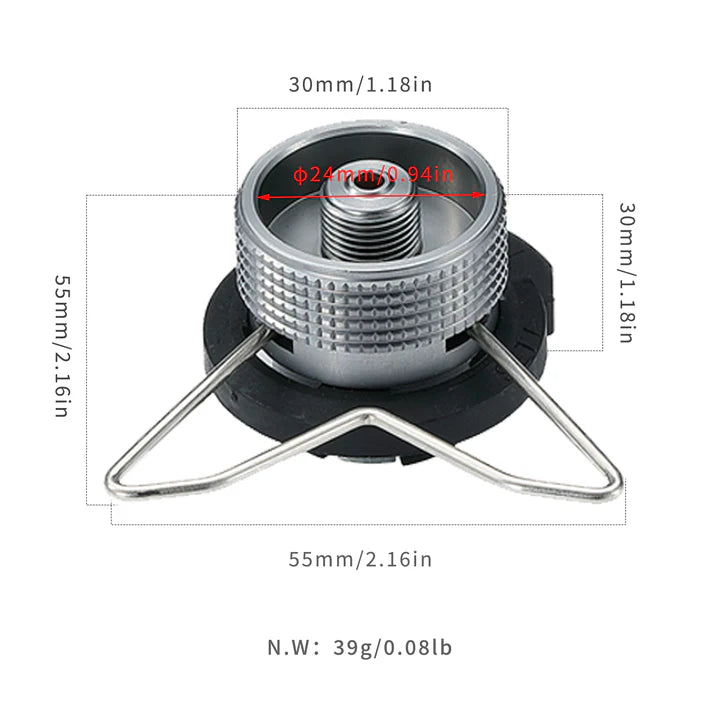 - [MATERIAL]: This butane adapter has an aluminum alloy shell, light weight, good strength, and good corrosion resistance. In order to prevent corrosion, a dense oxide film is formed on the surface of the aluminum alloy.