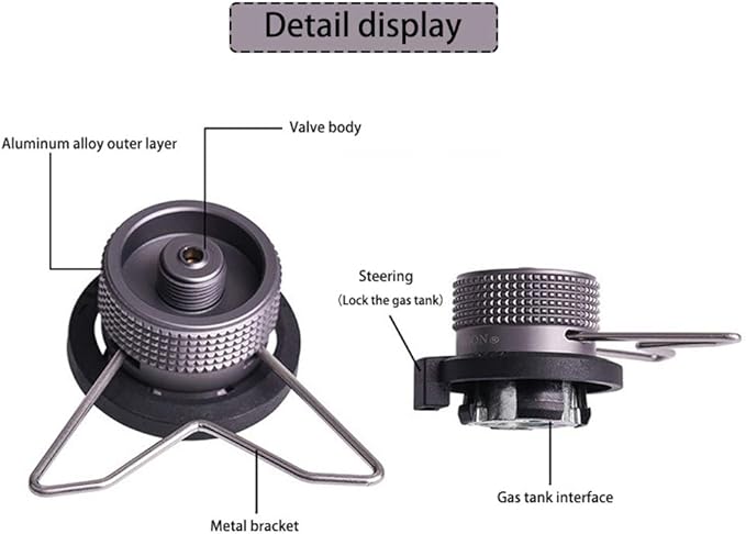 - [FEATURES]: Z10 butane adapte unique metal bracket of the product can play a supporting role and It will make the gas tank not easy to roll There is a locking device in the valve device, which can be directly connected to the gas tank, the threaded design of the adapter interface has very good sealing.
