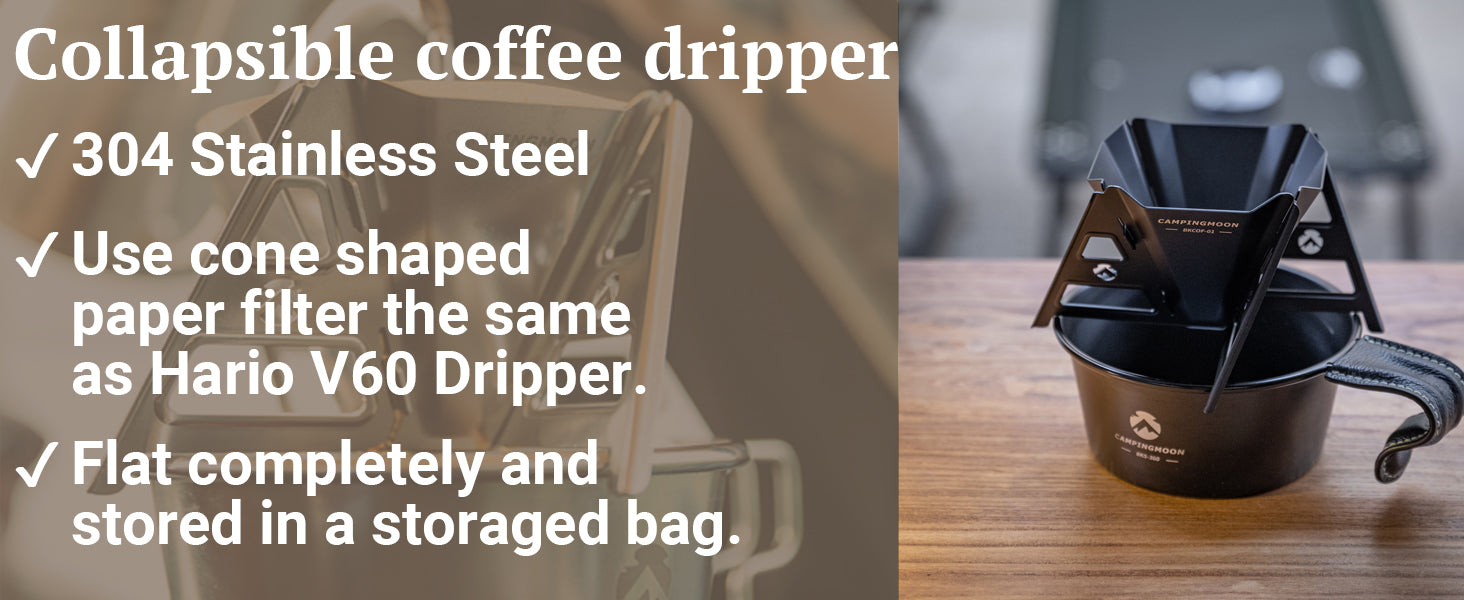 ![[Coffee Tools] Campingmoon BKCOF-01; Collapsible Stainless Steel Camping Coffee Maker, Pour Over for Camping](http://nobrandcamp.com/cdn/shop/files/88a96d48-322c-46c1-ba9e-57de253788f9.__CR0_0_1464_600_PT0_SX1464_V1.jpg?v=1744246493&width=1445)
